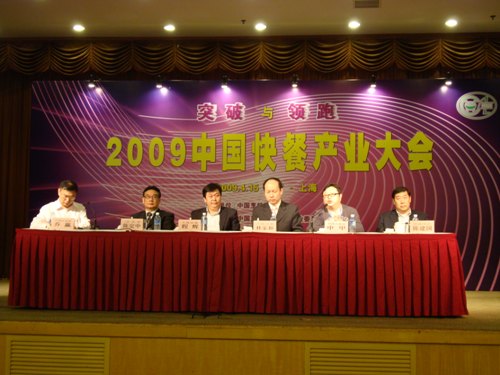 4月15日至17日,由中国烹饪协会主办,快餐专业委员会承办的2009中国快餐产业大会在上海隆重召开。大会以“突破与领跑”为主题,来自全国各地包括港、澳、台地区和美国、日本等国家的300余位最具知名度的快餐品牌企业家和有关专家、学者汇聚一堂,共同探讨中国快餐业如何在当前金融危机中规避风险、巧抓机遇、引领时尚、逆风飞扬,加快实现跨越式发展。