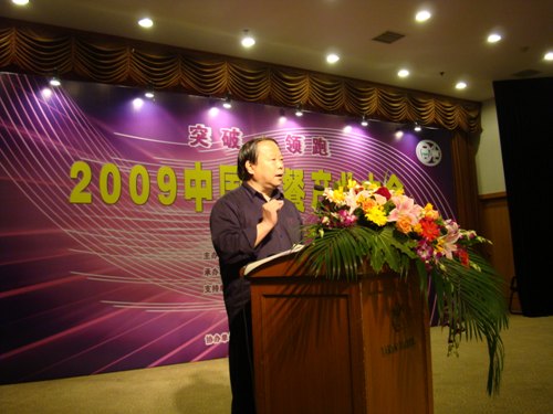 中国烹饪协会会长、快餐专业委员会主任苏秋成在大会上发表了“逆风飞扬——彰显中国快餐力量”的主题演讲。他在演讲中指出:快餐是大众化的餐饮服务,是人们生活必需的,因此在金融危机的影响下,国际国内资本对快餐的青睐、品牌企业店铺的快速扩张、新品牌企业的不断涌现等现象,都说明我国快餐市场的发展前景非常广阔,快餐企业比正餐企业有着更加顽强的生命力。同时,也从另一个侧面反映出中国快餐在经济危机中逆势发展的强劲动力。我国快餐企业把危机转化为快餐事业发展的机遇,坚定信心,振奋精神,成为中国餐饮业拉动内需、促进消费的排头部队。