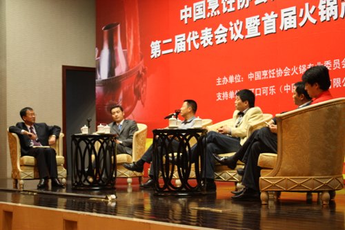 下午,产业大会高峰论坛在与会代表们自发的合唱——《歌唱祖国》的歌声中正式启动了。代表们用歌声表达了在当前严峻的经济形势下火锅行业团结一心共渡难关的决心。高峰论坛由河南一尊实业总经理代义主持,青岛摸错门餐饮有限公司董事长刘传涛、云南大滇园董事长刘子昆、北京黄纪煌技术开发有限责任公司董事长黄耕、重庆德庄总经理周宏、北京鼎鼎香餐饮管理有限公司总监丁永参加讨论,嘉宾们分别对企业的发展展开详细阐述并与与会代表进行了详细交流。高峰论坛认为“找准企业定位”、“提高企业核心竞争力”、“创新改革”、“求同存异”是火锅行业乃至餐饮业所必不可少的要素,并以自身企业为例向代表们分享了其中经验,代表们均觉受益匪浅。