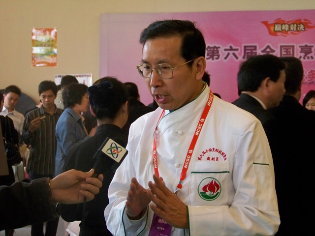 餐厅服务项目裁判组长宋春亭接受中央电视台记者采访