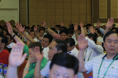 按照大会议程,主席团秘书长冯恩援、主席团成员孙应武分别向代表们通报了第五届会员代表大会的筹备情况、到会代表情况与四届理事会的财务报告,全体代表对四届理事会的工作报告、财务报告进行了审议表决,举手表决通过了“中国烹饪协会章程”、“中国烹饪协会会员管理办法”,鼓掌通过了第五届会员代表大会致第四届理事会的感谢信,并选举产生了中国烹饪协会第五届理事会。