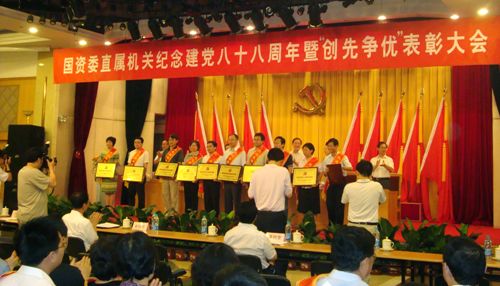 6月26日下午,在国务院国有资产监督管理委员会直属机关纪念建党八十八周年暨“创先争优”表彰大会上,中国烹饪协会党支部荣获“先进基层党组织”荣誉称号,中国烹饪协会常务副会长杨柳代表协会出席了大会,并接受国资委领导颁发的牌匾。
