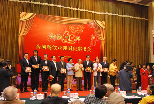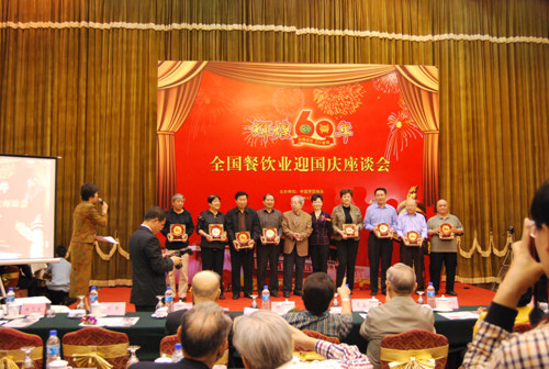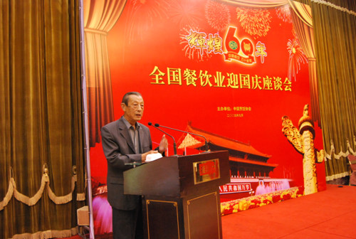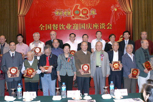在座谈会上,原商业部副部长张世尧回顾了60年来中国餐饮服务业走过的风雨历程,他指出,60年来,中国共产党带领全国人民以一往无前的进取精神和气势磅礴的创新实践,在建设富强民主文明和谐的社会主义现代化国家道路上,取得举世瞩目的伟大成就。著名饮食文化专家李士靖表示,中国餐饮业在取得丰功伟绩的同时,迎来了餐饮产业和饮食文化快速扩张的新机遇,展望未来中国餐饮业任重道远,壮大餐饮产业,拓展餐饮经济,创新餐饮科技,培育餐饮人才,扩充餐饮就业,建设餐饮法制,在迎接中华盛世的到来,实现中华民族伟大复兴的划时代进程中,餐饮业在保增长、扩内需、促就业、稳社会的国策大战略中,将取得更加辉煌的历史功绩。全聚德集团姜俊贤董事长和中国烹饪大师李耀云先生也分别作为餐饮企业和厨师代表与大家分享了60年来餐饮业的沧桑巨变。