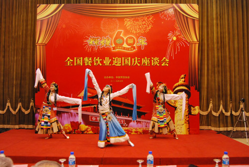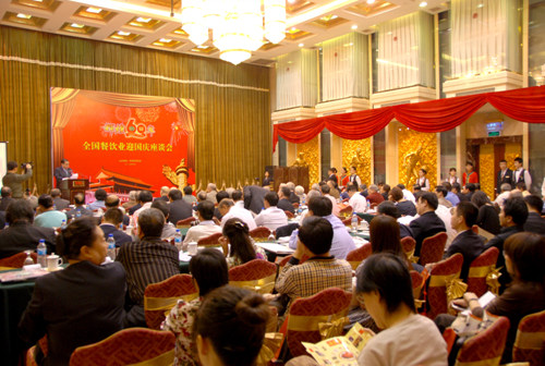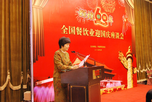 9月21日,在新中国成立60周年华诞前夕,全国餐饮业迎国庆座谈会在北京隆重召开。100多位为中国餐饮业60年发展做出杰出贡献、具有很强行业影响力的先进人物出席了座谈会,原中共中央政治局委员、中央军委副主席迟浩田上将,十届全国人大原副委员长顾秀莲,八届、九届全国政协副主席孙孚凌,原商业部部长刘毅,原国内贸易部部长胡平,原商业部副部长张世尧等领导和国资委直属机关党委、中国商业联合会领导以及中国烹饪协会会长苏秋成、常务副会长杨柳出席座谈会并和与会代表合影留念。座谈会由杨柳主持。