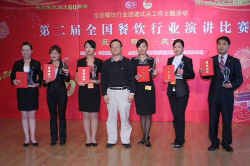 9月20-21日,由中国烹饪协会和全国餐饮行业团建试点工作领导小组办公室共同组织的第二届全国餐饮业“爱岗·敬业·成才”主题演讲比赛在北京隆重举行,作为中国餐饮业团建工作的系列活动和中国烹饪协会迎国庆60周年献礼活动之一,本次活动得到了共青团中央青工部、中央国家机关青联、国资委团委的高度重视,中国烹饪协会会长苏秋成、常务副会长杨柳出席活动并讲话。这项活动也吸引了顺峰、眉州东坡、和合谷、陶然居、东来顺、小肥羊、功德福、俏江南老娘舅等全国50多家团建企业近70位青年选手的积极参与,《中国青年报》、《中国食品报》、《北京晚报》、搜狐吃喝频道、千龙网的媒体代表全程参与了比赛过程并担任比赛评委。