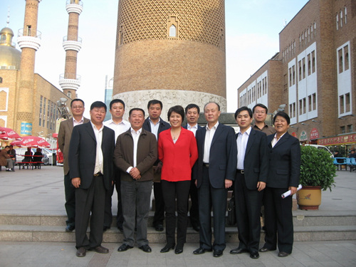 杨柳常务副会长在新疆国际大巴扎与乌鲁木齐市领导合影