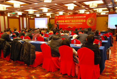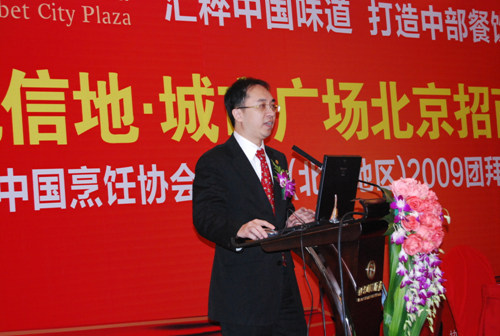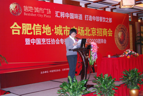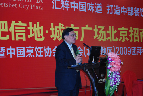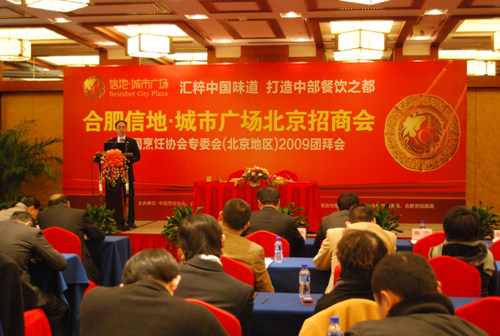 日前,由我会和合肥市餐饮协会共同主办,香港信地集团协办的以“汇粹中国味道、打造中部餐饮之都”为主题的,信地•城市广场北京招商会暨中国烹饪协会专委会(北京地区)2009团拜会在北京隆重举行。中国烹饪协会副秘书长李亚光、合肥市餐饮协会会长周富如、合肥市商务局总经济师崔霞、香港信地集团董事长助理黄邦德先生和中国烹饪协会火锅专委会、清真专委会、快餐专委会、西餐专委会、职业经理人专委会部分在京委员出席此次活动。