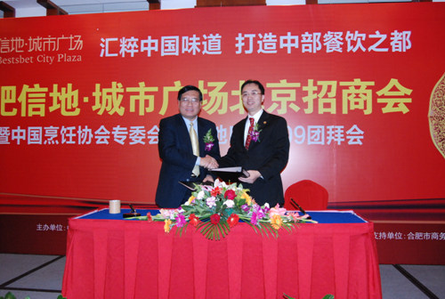 在信地•城市广场北京招商会大会,中国烹饪协会、合肥市餐饮协会、合肥市商务局等领导先后致辞,对京皖两地的商业发展尤其是餐饮业的发展给予了充分的肯定,对信地•城市广场项目给予了高度评价。大会搭起了北京、安徽两地餐饮界交流的平台,通过两地政府和协会领导的大力支持,两地企业家们进行了广泛的交流,建立起了北京、安徽的纽带,加强了合肥餐饮协会与我会的联系,繁荣了安徽合肥的餐饮文化。同时通过对信地•城市广场开发背景、经营管理理念、经营规划以及发展方向与目标的全面阐述,树立了信地集团的整体形象,为北京的企业家们更好的了解了合肥、了解了信地集团、了解了信地•城市广场。