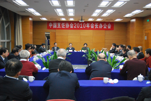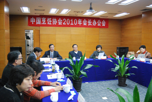 3月10日,中国烹饪协会2010年会长办公会在北京陶然大厦召开,中国烹饪协会会长苏秋成、常务副会长杨柳和18位副会长以及特邀顾问孙光远、沈思明,顾问马凤岐、李有堂和秘书长冯恩援等出席了会议。会议由常务副会长杨柳主持。