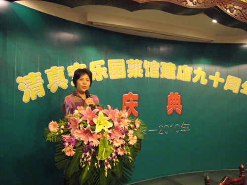 中国烹饪协会常务副会长杨柳在南京清真安乐园菜馆90周年店庆致辞
