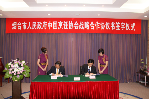 日前,中国烹饪协会与烟台市人民政府在烟台凤凰山宾馆签定了战略合作协议书。