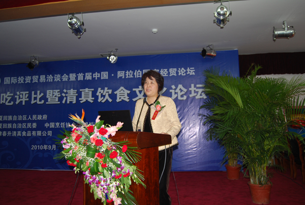 论坛上,杨柳常务副会长从专业角度就我国清真餐饮产业的发展现状,清真产业的发展前景,国际清真饮食市场的巨大的潜力商机,以及中国清真餐饮产业发展的新思路等方面为大会做了主题演讲,为发展清真产业提出了很好的意见和建议。