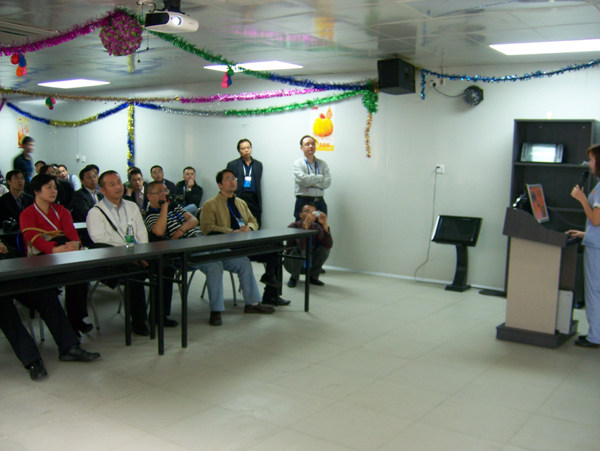 考察团员在听取美心的企业经营管理介绍