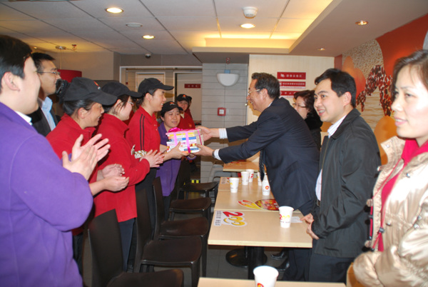 刘秀军同志慰问餐饮企业并赠送节日礼物