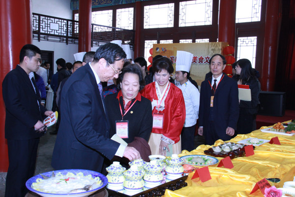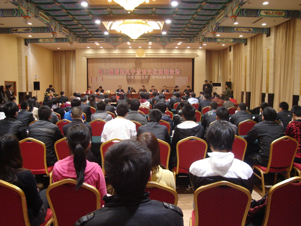 为了弘扬中华饮食文化,传承孔府菜精品,推进中餐走向世界,4月11日,由中国烹饪协会、中国孔子基金会交流与合作委员会、山东省烹饪协会、山东省鲁菜研究会共同主办的第二届国际孔子饮食文化高峰论坛暨中国国际孔子饮食文化交流展示会在济南举行。中国烹饪协会副会长兼秘书长冯恩援、会长助理李亚光,中国孔子基金会副秘书长王大千,山东省烹饪协会常务副会长李光壁,山东省鲁菜研究会会长王兴兰与来自国内外的餐饮行业专家和大型餐饮企业代表200余人前来参加此次活动,山东省旅游局副局长赖征宇、济南市商务局副局长张欣和韩国中餐协会会长吕敬玉、韩国世界饮食文化研究院院长梁季子等应邀出席了开幕式。