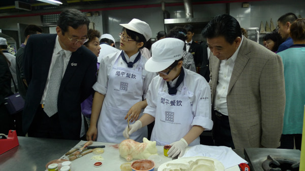 冯恩援副会长一行受到了热烈欢迎,开平餐饮学校主要领导悉数到场,学生代表亲手制作了精致的茶点。代表团听取了开平餐饮学校简介,考察了烘焙厨房和亚洲菜系推广中心,并与学生代表进行了深入、细致的交流,对台湾餐饮职业教育、学生就业等情况有了更深一步的了解。