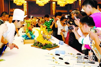 26日,“舒友杯”第三届全国海鲜烹饪技能大赛暨首届厦门美食节在翔鹭大酒店拉开帷幕,200多位来自全国各地的厨师齐聚一堂,展开了一场以海鲜为主题的厨艺大比拼。