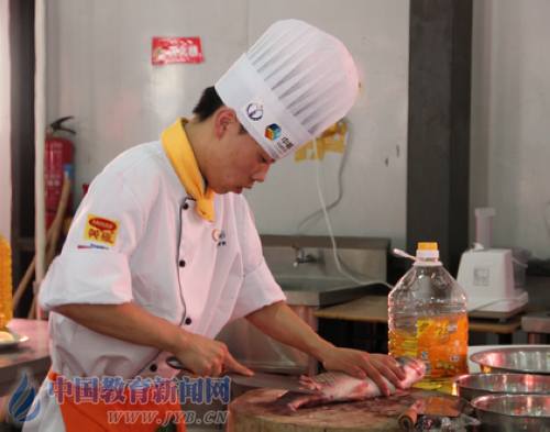 参加中职组烹饪技能比赛的选手在认真的比赛
